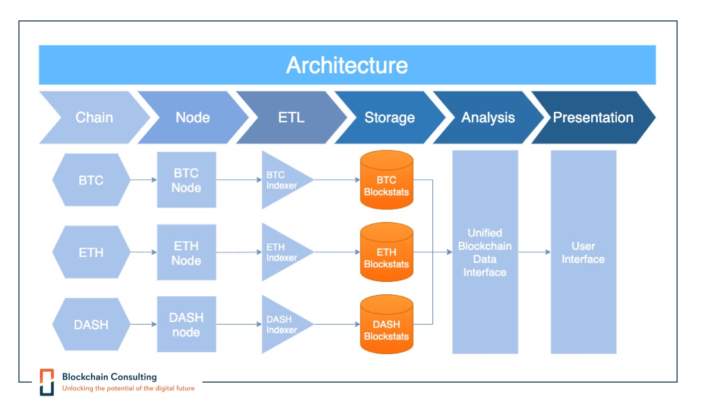 If our client had decided to use existing Block Explorers and their data, we would have had to program our own software which provides a homogeneous interface to all blockchains.